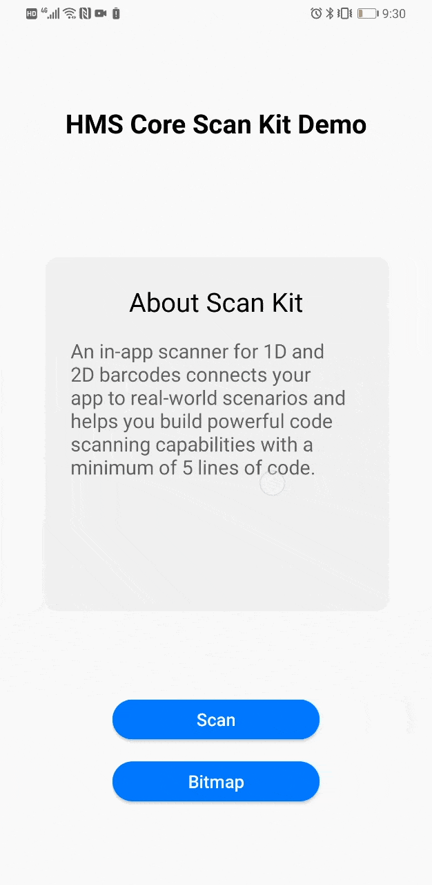 统一扫码服务提供多元的接入方式,最少5行代码即可拥有强大的扫码能力,开发者可以直接使用Scan Kit提供的默认扫码页面,也可以基于Scan Kit提供的示例代码,快速自定义扫码功能。以下我会以Default View Mode为例,展示具体的集成步骤。