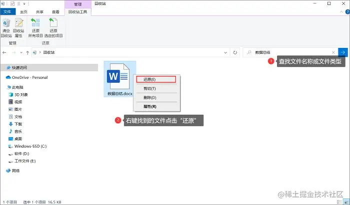 方案1:使用回收站还原误删的文件