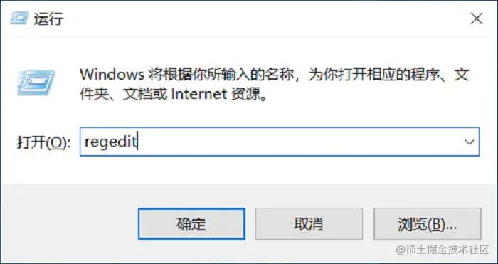 2.然后打上“regedit”这个命令,点击确定或者在键盘中回车执行;