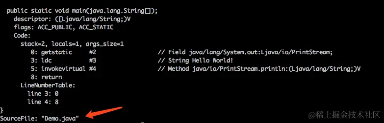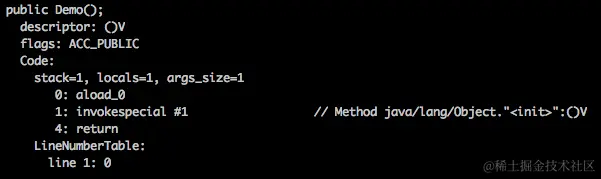 将利用 javap 打印出的结果,与我们手动分析的结果对比一下,你会发现结果是一致的。