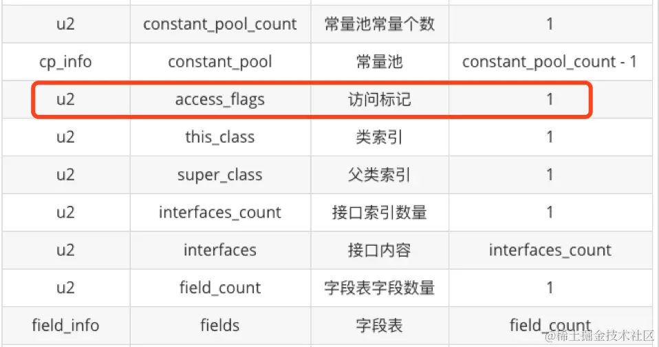 通过查阅上述表格,我们可以知道,00 21 由 00 01(第1行)和 00 20(第3行)进行或运算得来。也就是说该类的访问标志是 public 并且允许使用 invokespecial 字节码指令的新语义。
