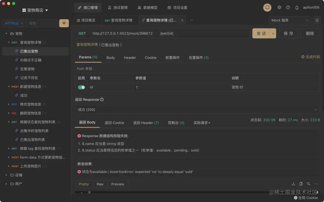 使用 Apifox 调试接口的时候,系统会根据接口文档里的定义,自动校验返回的数据结构是否正确,无需通过肉眼识别,也无需手动写断言脚本检测,非常高效!