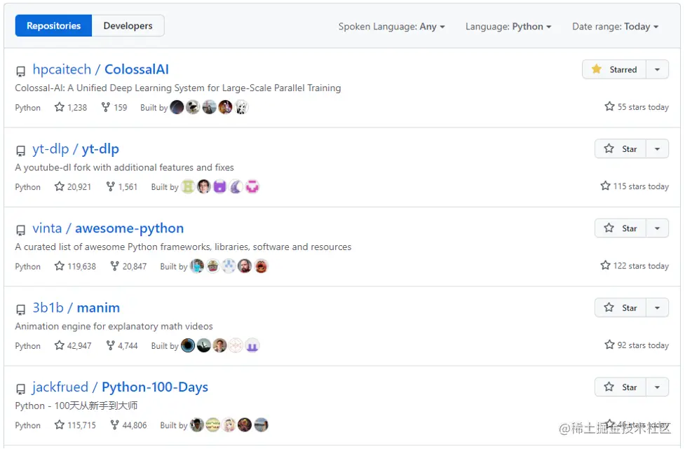 自开源以来,Colossal-AI 已经多次登顶 GitHub 热榜 Python 方向世界第一,与众多已有数万 star 的明星开源项目一起受到海内外关注!