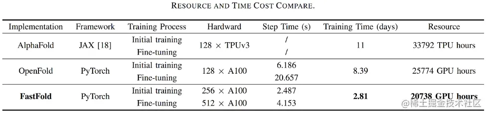 对于蛋白质结构预测应用 AlphaFold,基于 Colossal-AI 的加速方案的 FastFold,成功超越谷歌和哥伦比亚大学的方案,将 AlphaFold 训练时间从 11 天减少到 67 小时,且总成本更低,在长序列推理中也实现 9.3~11.6 倍的速度提升。