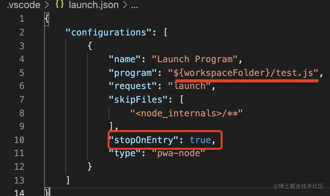 注意,想达到和 --inspect-brk 一样的首行断住的效果,这里要执行 stopOnEntry 为 true。