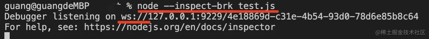 执行的时候加上一个 --inspect 的参数,就会启动调试服务了: