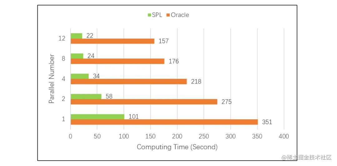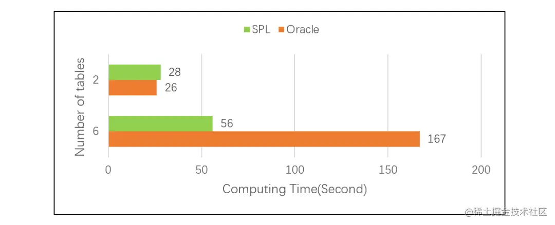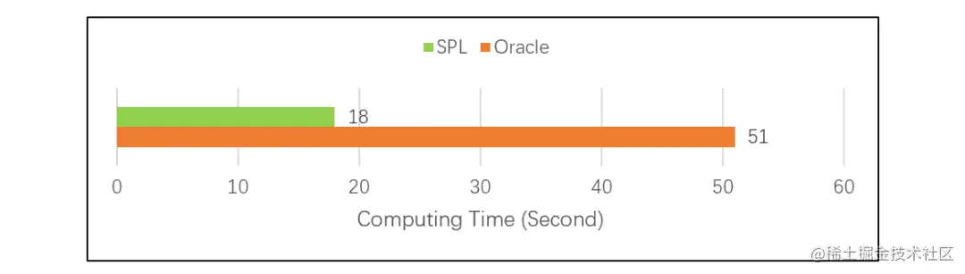 实际测试证明,在相同情况下,我们对两个大表做主键关联测试,结果是 SPL 比 Oracle 快了近 3 倍: