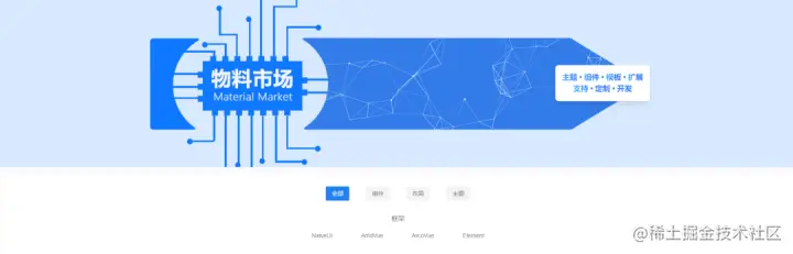 目前物料市场,主要是围绕 NaiveUi,AntdVue,AntdVue,Element ui框架,分三大类,组件,布局,主题