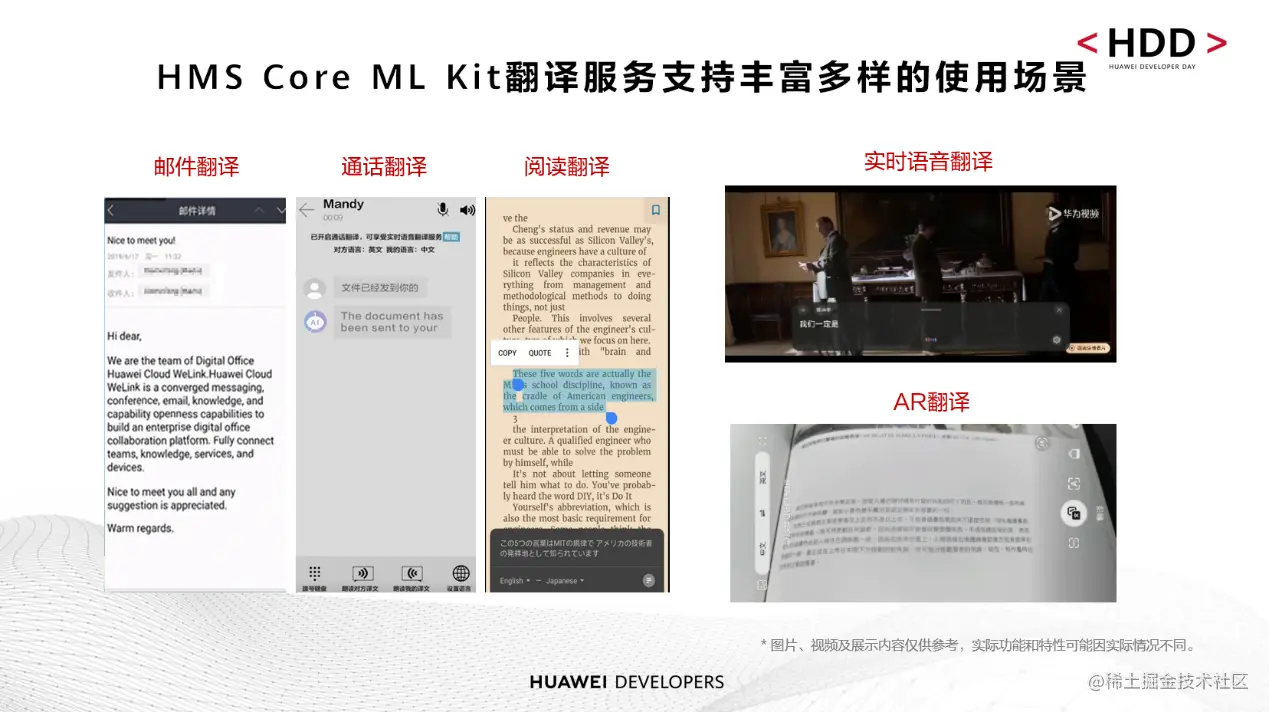5月24日, HUAWEI Developer Day(简称HDD)线上沙龙·创新开发专场活动成功举办。HMS Core机器学习服务(ML Kit)产品经理在会上围绕机器翻译的技术优势、使用场景和接入指导等为开发者们做了详细解读。ML Kit将助力开发者更快更好地开发翻译类应用,帮助用户轻松跨越语种障碍。