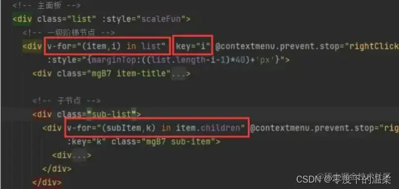 用于遍历循环生成系列元素,这也是常用指令,key 属性应该被注意,如果你希望你的元素(组件)保持足够的独立性。