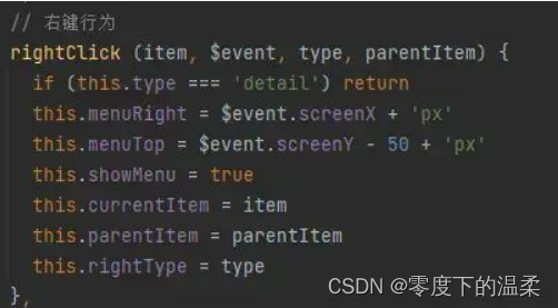 components tips:修饰符: .lazy - 取代 input 监听 change 事件 .number - 输入字符串转为有效的数字 .trim - 输入首尾空格过滤 结合修饰符使用,有时会显得很有用,例如进阶图中使用 v-model.trim, 这样在输入链接文字的时候,就会自动去掉首尾的空格,而这并不影响功能, 而有时会很妙,例如一些 iOS 手机上在表单网页上常常在输入完成后会自动带上空格, 我遇到的一个例子是输入账号密码时,一不小心就携带了空格,而这并不友好, 如果使用 .trim 就好多了,这是指在这种场景下。 编辑 写到这里,我其实也没想到,一个进阶图涉及这么多技术点,所以平时应该积少成多, 养成学习写作积累的习惯。更多的积累,有时能够灵活配套打出一套更有力的拳。涉及 vue 的,可能还有更多技术点,欢迎关注的同学评论区指出。 **2. JavaScript 和 Html 系列** **15. addEventListener 和 removeEventListener** EventTarget.addEventListener() 方法将指定的监听器注册到 EventTarget 上,当该对象触发指定的事件时,指定的回调函数就会被执行。事件目标可以是一个文档上的元素 Element,Document和Window或者任何其他支持事件的对象 (比如 XMLHttpRequest)。 addEventListener()的工作原理是将实现EventListener的函数或对象添加到调用它的EventTarget上的指定事件类型的事件侦听器列表中。 进阶图开发中,使用 addEventListener 监听 click 事件, 监听回调为 clickListener,结合了 Element.contains() 以实现击行为发生在 menuPanel(菜单区域) 区域外,关闭右键弹起的菜单。如下: mounted () { // 监听 click 事件 document.addEventListener('click', this.clickListener) }, beforeDestroy () { // 移除监听 document.removeEventListener('click', this.clickListener) }, 复制代码 clickListener (event) { if (this.type === 'detail') return if (!this.$refs.menuPanel) return // 点击行为发生在 menuPanel(菜单区域) 区域外,关闭右键弹起的菜单 // element.contains(),有时是非常有用的 api if (this.$refs.menuPanel && !this.$refs.menuPanel.contains(event.target)) { this.showMenu = false } }, 复制代码 **16. keyup.enter.native** keyup 事件在按键被松开时触发,keyup.enter 的作用是在 enter 回车键被松开的时候触发。这常常被用在登录、检索、和表单提交等需要回车键表示发送或确定的场景中。 进阶图中就是为实现回车键 Enter 被松开时触发检索关联数据而使用。如下 <el-input v-model="searchValue" @keyup.enter.native="clickSearch" placeholder="检索姓名或工号"></el-input> 复制代码 **17. new Date()** new Date() 是 javascript 的全局 api,可以用来创建当前时间。进阶图开发中, 是在生成 uuid 时用来获取当前时间的毫秒数。如下: // 获取当前时间的毫秒数 let d = new Date().getTime() // console.log(d) 1651127122490 复制代码 **18. window.performance.now()** 据 mozilla:该方法返回一个DOMHighResTimeStamp对象,该对象表示从某一时刻(译者注:某一时刻通常是 navigationStart 事件发生时刻)到调用该方法时刻的毫秒数。 **19. Math.random() 和 Math.floor** Math 是 javascript 的一个全局 api, Math.random() 的返回值是一个浮点型伪随机数字,范围是[0,1)。Math.floor() 的作用是为向下取整,返回一个整数。 **20. String.replace()** String.replace() 被用于替换字符,但不会改变原字符串,而是返回改变后的字符串。 tips:replace() 方法返回一个由替换值(replacement)替换部分或所有的模式(pattern)匹配项后的新字符串。 模式可以是一个字符串或者一个正则表达式,替换值可以是一个字符串或者一个每次匹配都要调用的回调函数。如果pattern是字符串,则仅替换第一个匹配项。 **21. toString()** 方法返回一个表示该对象的字符串,可以用于将数字(number)转换为字符串(string)。 **22. Array.push()、Array.map()、Array.findIndex() 和 Array.splice()** push() 可用于向数组添加数据项,在数组尾部添加;map() 可用于遍历数组;findIndex() 可用于查找符合条件的数据项;splice() 可用于删除数组中的元素,或在某个位置添加元素。 进阶图开发中都用到了这些数组的方法,例如 findIndex 和 push 结合使用,避免重复添加数据,举例如下: 编辑 **23. JSON.parse() 和 JSON.stringify()** JSON.parse() 这套组合还被我常用于 storage 的存储中,主要是为了保持数据的完整性和真实性, 例如一个 int 数字不会被改动为 string。进阶图开发中,使用 JSON.parse() 和 JSON.stringify() 实现深拷贝, 深拷贝之后拷贝前后的两份数据将是完整独立的, 一方的变动不会影响另一方。如下: this.form.relation.push(JSON.parse(JSON.stringify(this.outItem))) 复制代码 **24. window.open()** tips:Window 接口的 open() 方法,是用指定的名称将指定的资源加载到浏览器上下文(窗口 window ,内嵌框架 iframe 或者标签 tab )。如果没有指定名称,则一个新的窗口会被打开并且指定的资源会被加载进这个窗口的浏览器上下文中。 window.open() 在进阶图开发中,用于打开一个新窗口访问详情页。如下 编辑 **25. MouseEvent.screenX 和 MouseEvent.screenY** screenX 是 MouseEvent 的只读属性,提供鼠标在全局(屏幕)中的水平坐标(偏移量)。screenY 则是提供鼠标在全局(屏幕)中的垂直坐标(偏移量)。 在进阶图开发中,是利用鼠标的这两个坐标结合固定定位实现右键菜单的位置是跟随鼠标位置的。如下: 编辑 编辑 **26. localStorage** 可以使用键值对的形式,存取数据到 localStorage,存到 localStorage 中的数据可以被永久存储, 除非被主动删除。 进阶图开发中,适用于缓存进阶图数据,如下: localStorage.setItem('progressData', progressData) 复制代码 **27. n