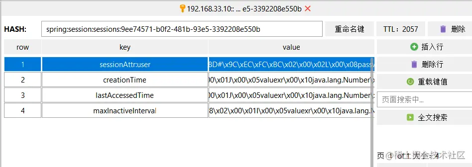 按照正常流程将User对象存入Session,重启项目并访问登录接口,来看看Redis中有什么变化: