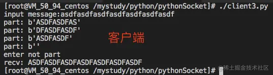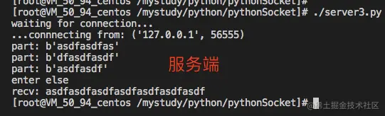 print("enter not part") #这边是走到此逻辑才退出的(即使数据接受完了还是会多接受一次,然后就命中这里了)