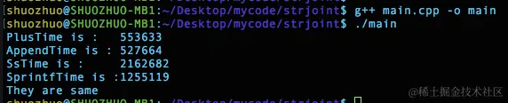 C/C++中字符串拼接的使用场景非常多,字符串拼接的方法也非常多,这里简单的比对下上述四种方法的效率。
