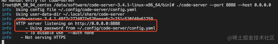 info Using config file ~/.config/code-server/config.yaml