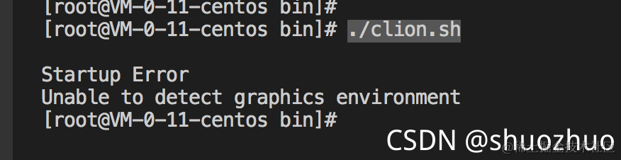 举个例子对于我的机器实际上是已经安装桌面环境了的。但是我尝试在shell(普通终端软件)上执行./clion.sh出现如下报错。但是通过vnc连接打开桌面通过其终端执行就是能够启动clion软件的。