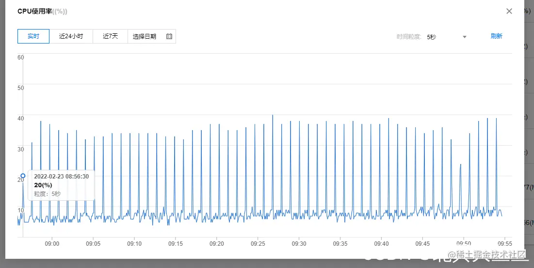1、cpu占用一分钟一个尖刺 如下图。