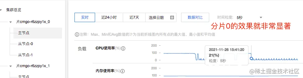 结论:好像有一点点作用,但十分有限;大概就是98%变成96%这个样子。也就是说cpu高并不是因为balancer,从这个角度可以知道balancer为降低对业务的影响确实“很克制”。针对cpu高的问题,可能就是autosplit导致的了。