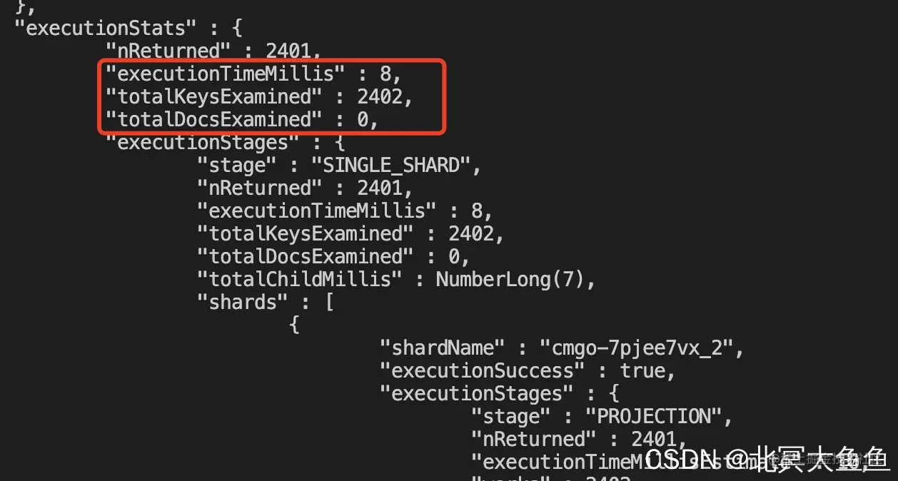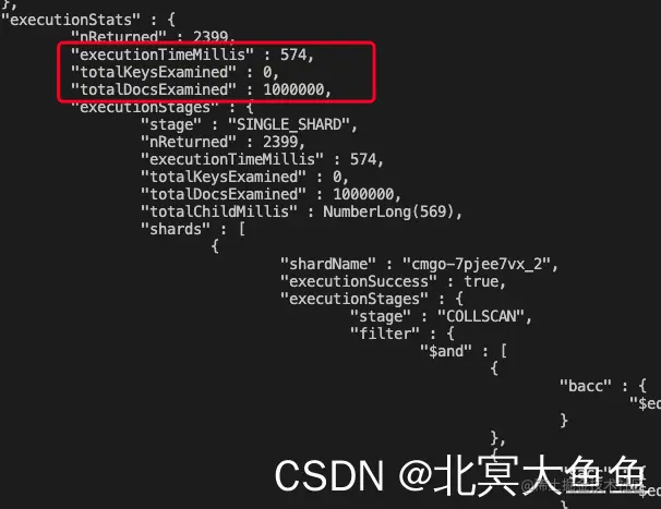 执行explain可以看到其执行过程如下右图。即mongodb遍历了所有的100万条数据整个过程耗时574ms,显然这个性能是无法接受的。