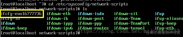 打开eno16777736文件,该文件所在路径是/etc/sysconfig/network-scripts/,cd过去如下所示: