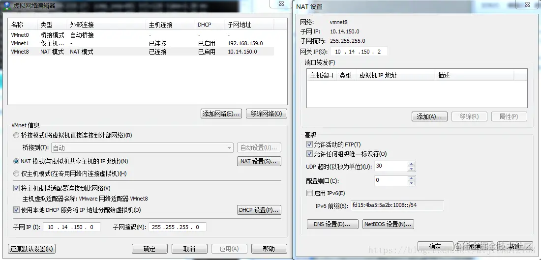 1、编辑→虚拟网络编辑器 配置完毕后的状态如下: