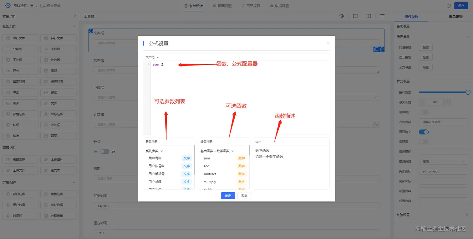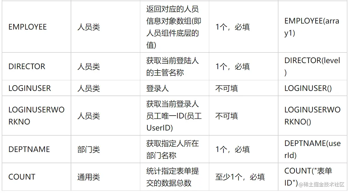 参与来源与表单携带过来的数据、系统底层提供的全局数据等,配置方式类excel的函数配置。