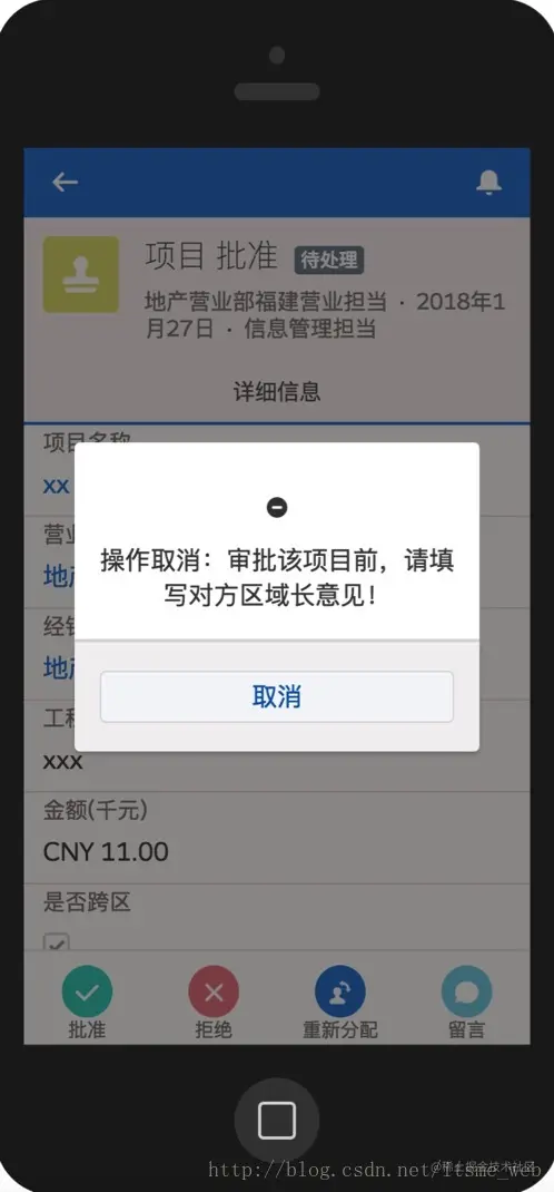 #1. 如果终审人拒审,则必须填入审批留言,说明拒绝原因才允许审批操作;