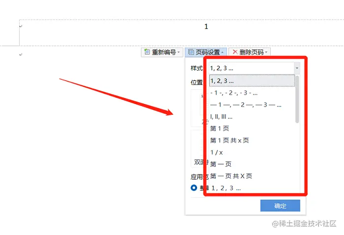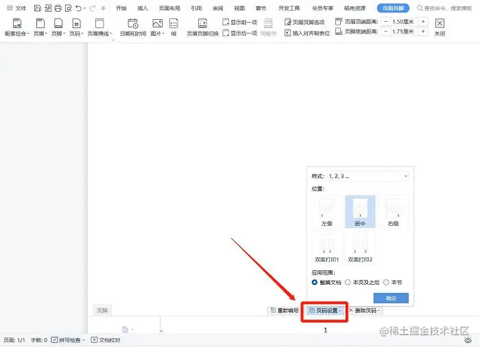 步骤二: 选择完自己喜欢的呈现形式后,相应的页码位置可以点击【页码设置】来重新设定自己最终想要的模式。