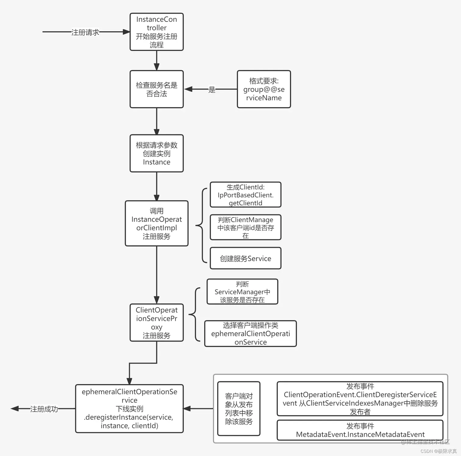 4、事件通知 移除该实例的元数据信息 这块流程在前面关于注册事件的注册事件的篇章中