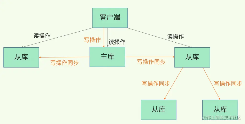 所以Redis的主从模式采用读写分离,也就是主库先执行写操作,然后将写操作的数据同步给从库,这样以后,主从库都可以接收读操作了。总结起来就是: