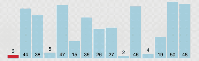 表现最稳定的排序算法之一,因为无论什么数据进去都是O(n2)的时间复杂度,所以用到它的时候,数据规模越小越好。唯一的好处可能就是不占用额外的内存空间了吧。理论上讲,选择排序可能也是平时排序一般人想到的最多的排序方法了吧。