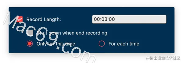 在Record Length之前启用该选项。然后您可以在此处设置自定义录制长度。如果您想自动录制并保存屏幕,您可以在结束录制时在关闭之前启用勾选标记。此外,根据您的需要,在“仅此一次”和“每次”之间切换。第 3 步开启录制长度