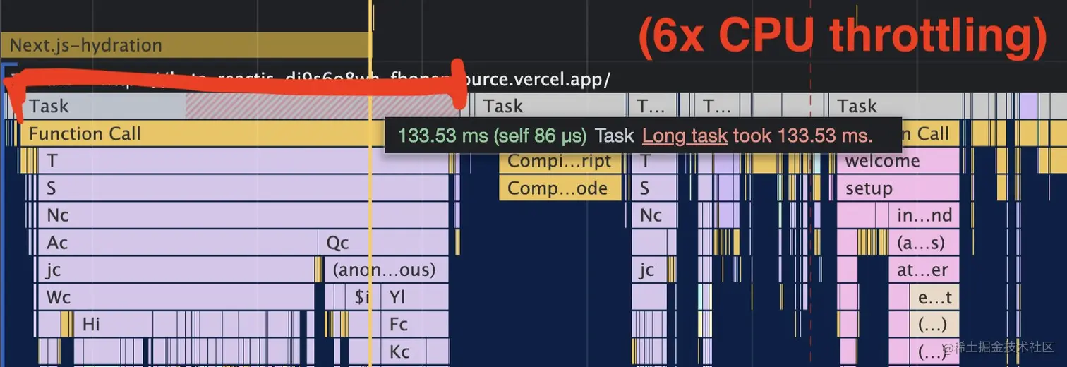 当包裹之后,这个长任务持续时间显著降低,进而降低TBT: