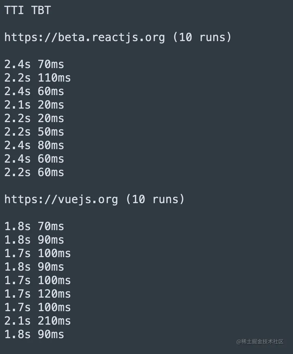 两者10次TTI跑分对比: