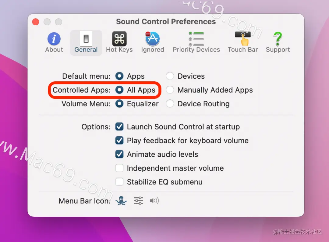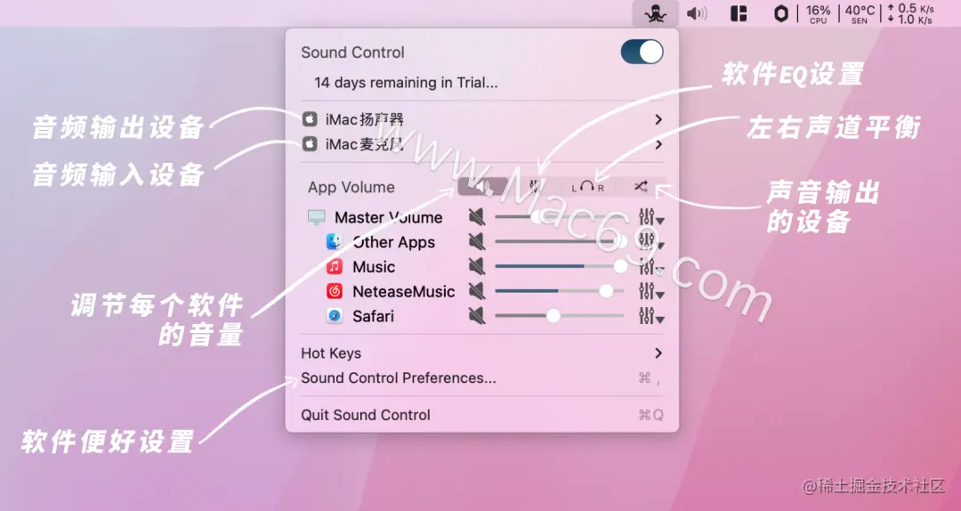 mac怎么控制各个软件的音量?如何在Mac上单独控制各个软件的音量?如果想在 Mac 上单独控制每一个软件输出的音量大小,可以通过安装第三方软件轻松实现,那可以试试这款Sound Control mac版。
