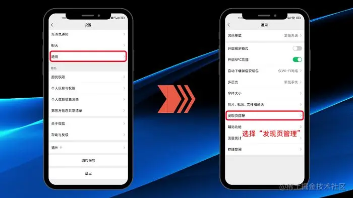 第2步:找到并选择“通用”选项,随后进入“发现页管理”;