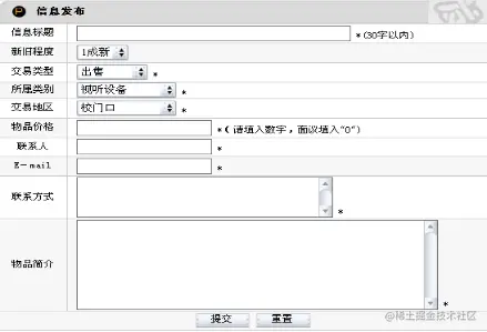 发布信息功能主要是为已注册用户的服务,登陆的用户可以即时发布自己的二手商品信息,立刻就能浏览到。这是本系统的主要功能。
