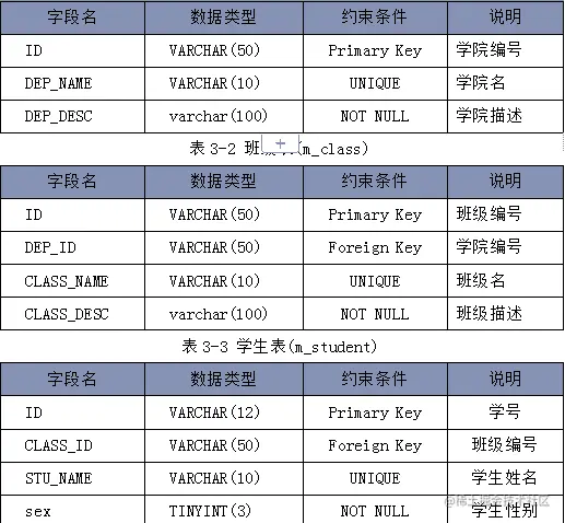 学生信息:包括学号,姓名,班级编号,学院编号等。