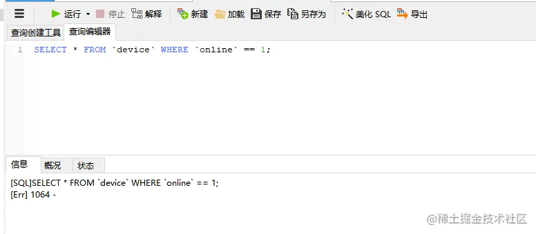 在MySQL中,sql语句where条件不支持==写法,但是在SQLite数据库中,该写法是支持的。