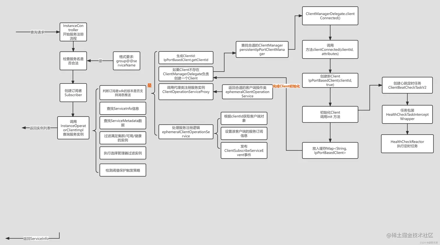 事件是订阅的核心就是 1、创建一个客户端并维护健康检查任务 2、给该客户端的订阅列表加入该服务的订阅记录 3、发布 ClientOperationEvent.ClientSubscribeServiceEvent 事件