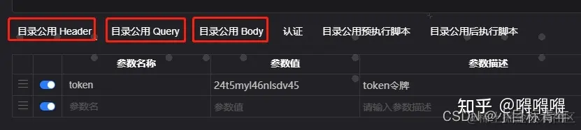 然后就是 可以去设置 公共的请求头参数 ,公共的Query参数,公共的Body参数 :