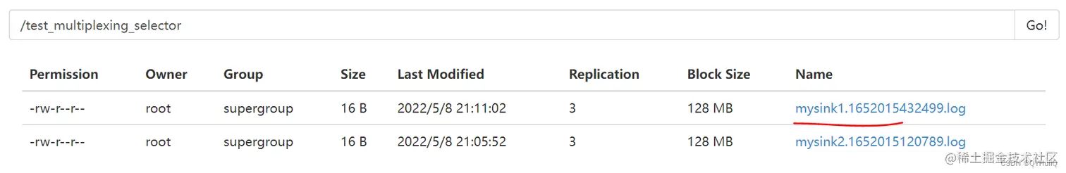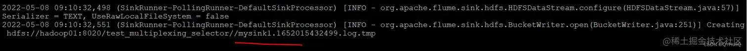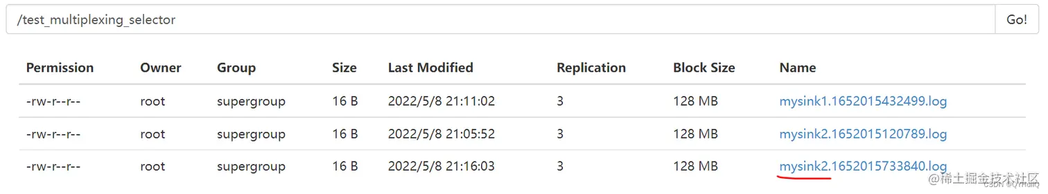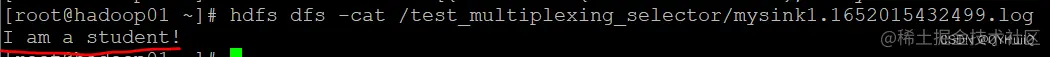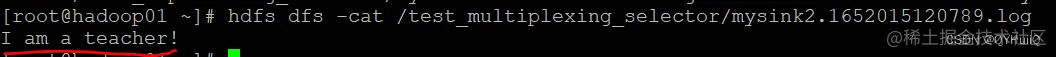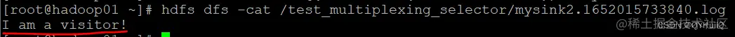 [root@hadoop01 ~]# hdfs dfs -cat /test_multiplexing_selector/mysink2.1652015733840.log