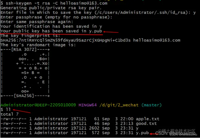 如果没找到id_rsa.pub文件,则根据git 软件的屏幕英文打印,看秘钥产生的位置。