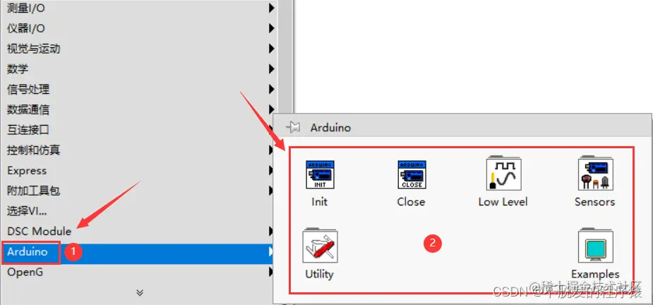 LabVIEW中有专业的接口工具包实现和Arduino进行联控:LabVIEW Interface for Arduino Toolkit。