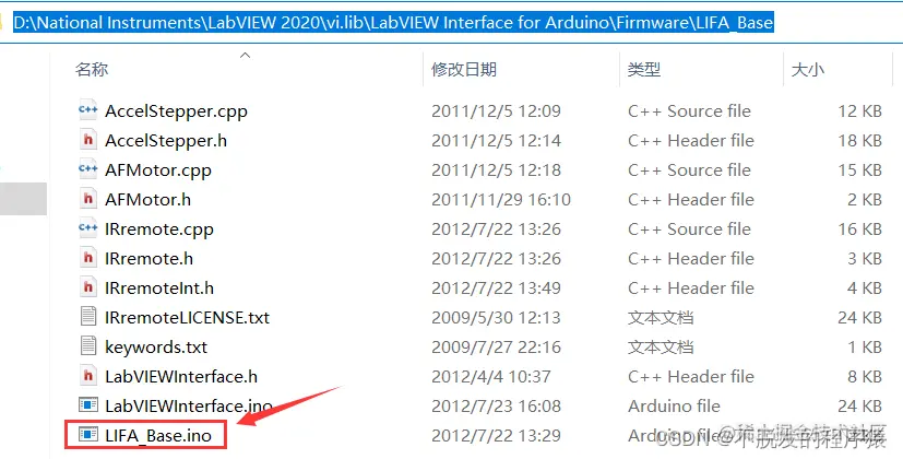 将Arduino作为下位机时,需要烧录LIFA_Base.ino,可在安装工具包路径下找到,例如该文件在我的电脑位于:
