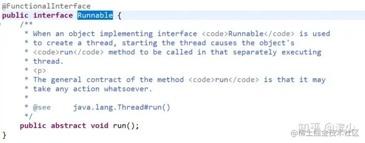在以上三种方式中,工作中最常用的是方式二,也就是实现Runnable接口。尽管我们知道了方式二是最常用的,但是喝水不忘挖井人。那么谁是挖井人呢?我们先来看看Runnable接口的源码。