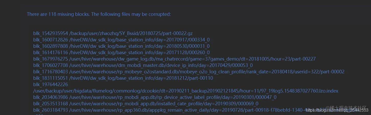 集群报块丢失的原因很多,如物理磁盘损坏,节点不正常下线退役,集群高负载时如内存打满卡死,网络拥堵,系统本身问题等造成节点掉线,如cdh集群的agent和server失去联系,非正常下线,心跳超时等原因造成yarn界面出现块丢失现象。出现这种现象的底层原理,以及出现这种情况该如何分析,如何应对?