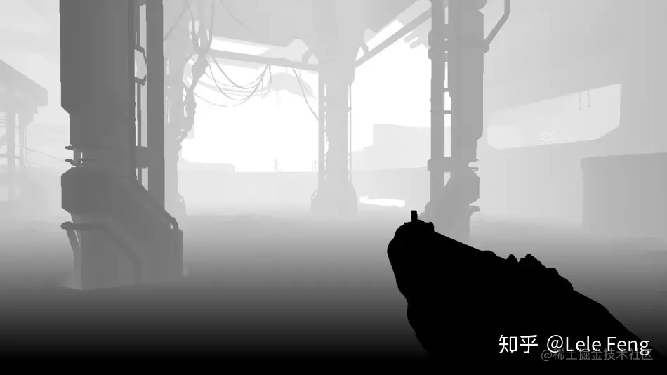 然后,需要为所有不透明物体渲染 depth pre-pass。渲染时会按照一定顺序渲染,先渲染玩家武器,然后是静态物体,最后是动态物体。下图分别显示了 20%、40%、60%、80%、100% 的 depth map 渲染进度: