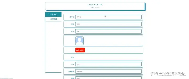 用户注册,在用户注册页面通过填写用户名、密码、姓名、学校、联系电话、邮箱等信息完成用户注册,如图所示。在个人中心页面通过填写用户名、密码、姓名、性别、学校、联系电话、邮箱等信息进行个人信息修改操作,还可对我的收藏进行相对应操作,如图所示。