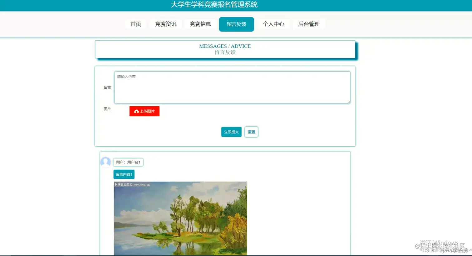 留言反馈页面、用户可以留言评论交流